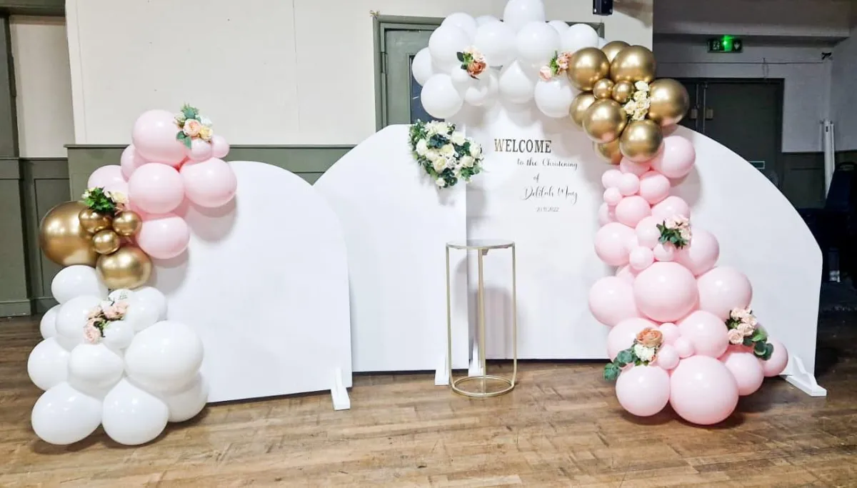 At Balloons and Ribbons, we create beautiful balloonn decor for christenings that adss a soft, elegant touch to your celebration. From pastel balloon arches and garlands to personalised displays and photo-ready backdrops, every design is crafted to complement the importance of the day. Whether the event is at home, a hall, or a venue, we bring your vision to life with care and creativity.